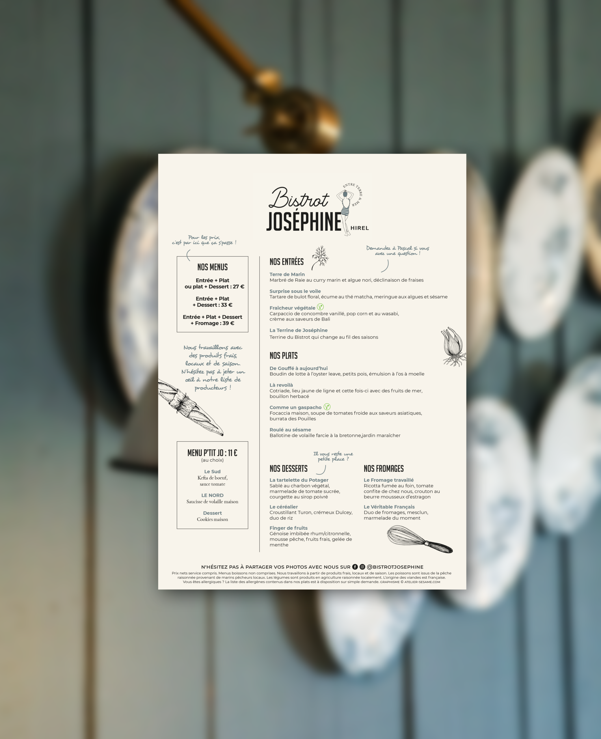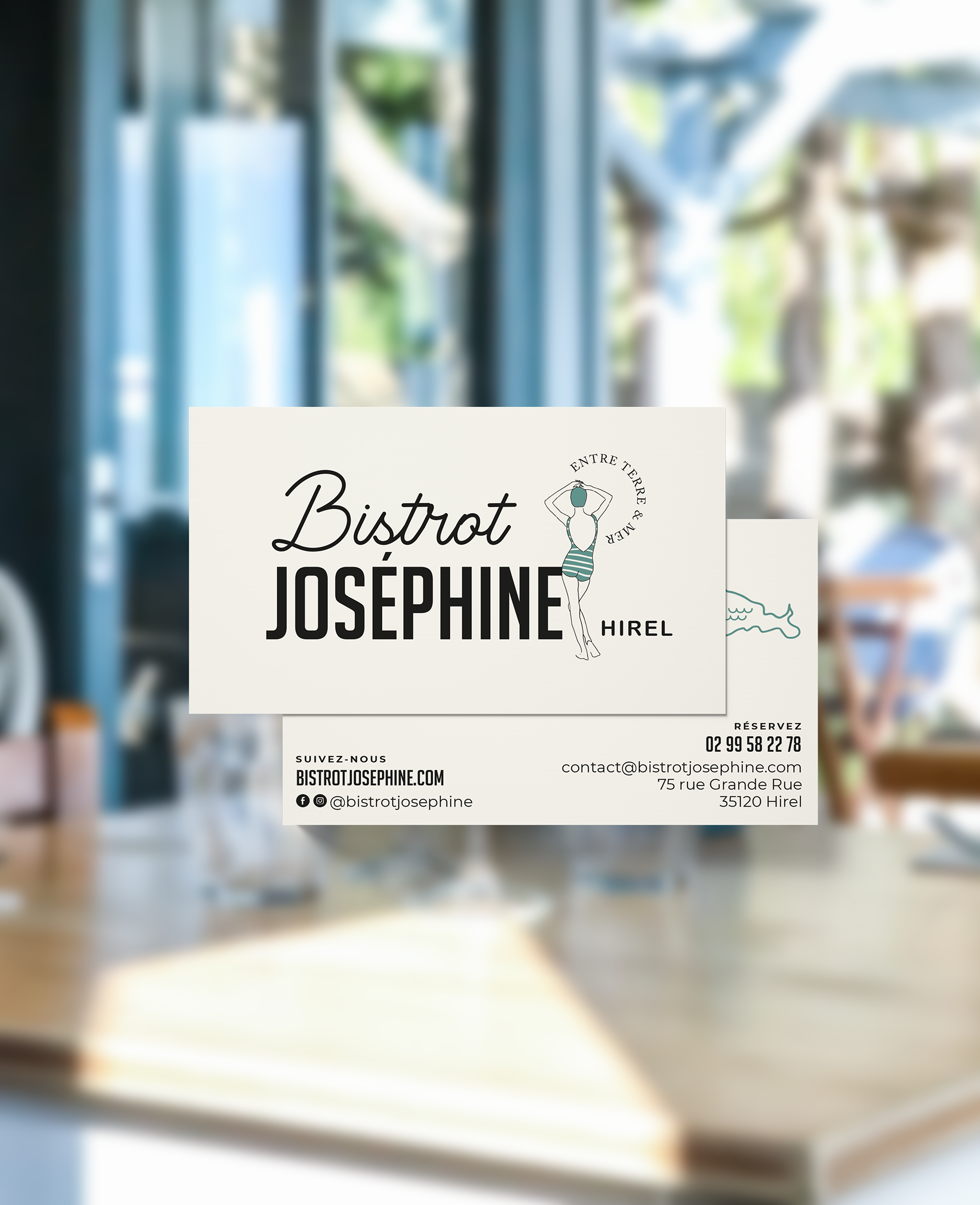 Le Bistrot Joséphine est un restaurant bistronomique situé à Hirel, entre le Mont-Saint-Michel et Cancale, face à la mer. Créé par Léa et Pascal Orticoni, le lieu se veut convivial et chaleureux, autour d’une cuisine de produits locaux issus de la mer et de la terre. Le restaurant se déploie en trois ambiances distinctes, dans un esprit brocante bohème chic, complété par une terrasse au style guinguette. La communication s’inscrit dans cette même atmosphère : familiale et conviviale !